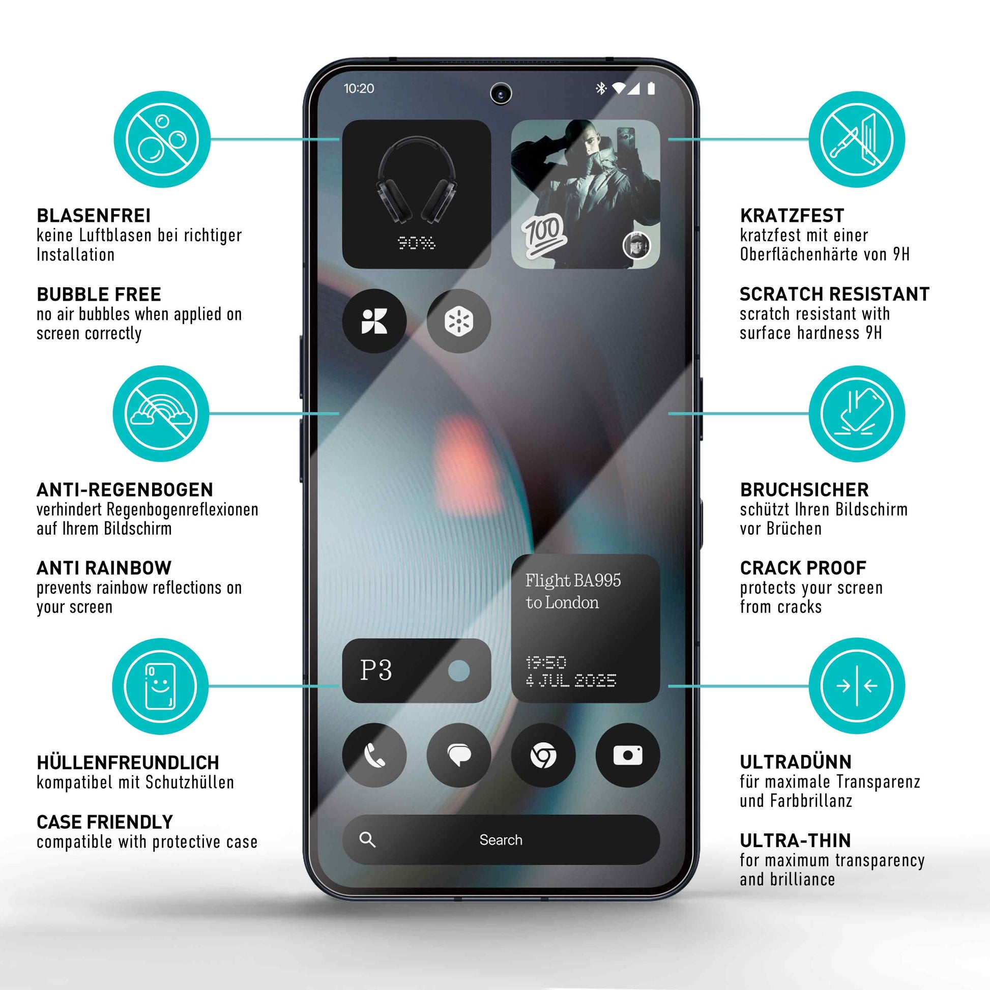 • Ultrahartes 9H Glas - schützt ihr Display vor Kratzern und Bruch