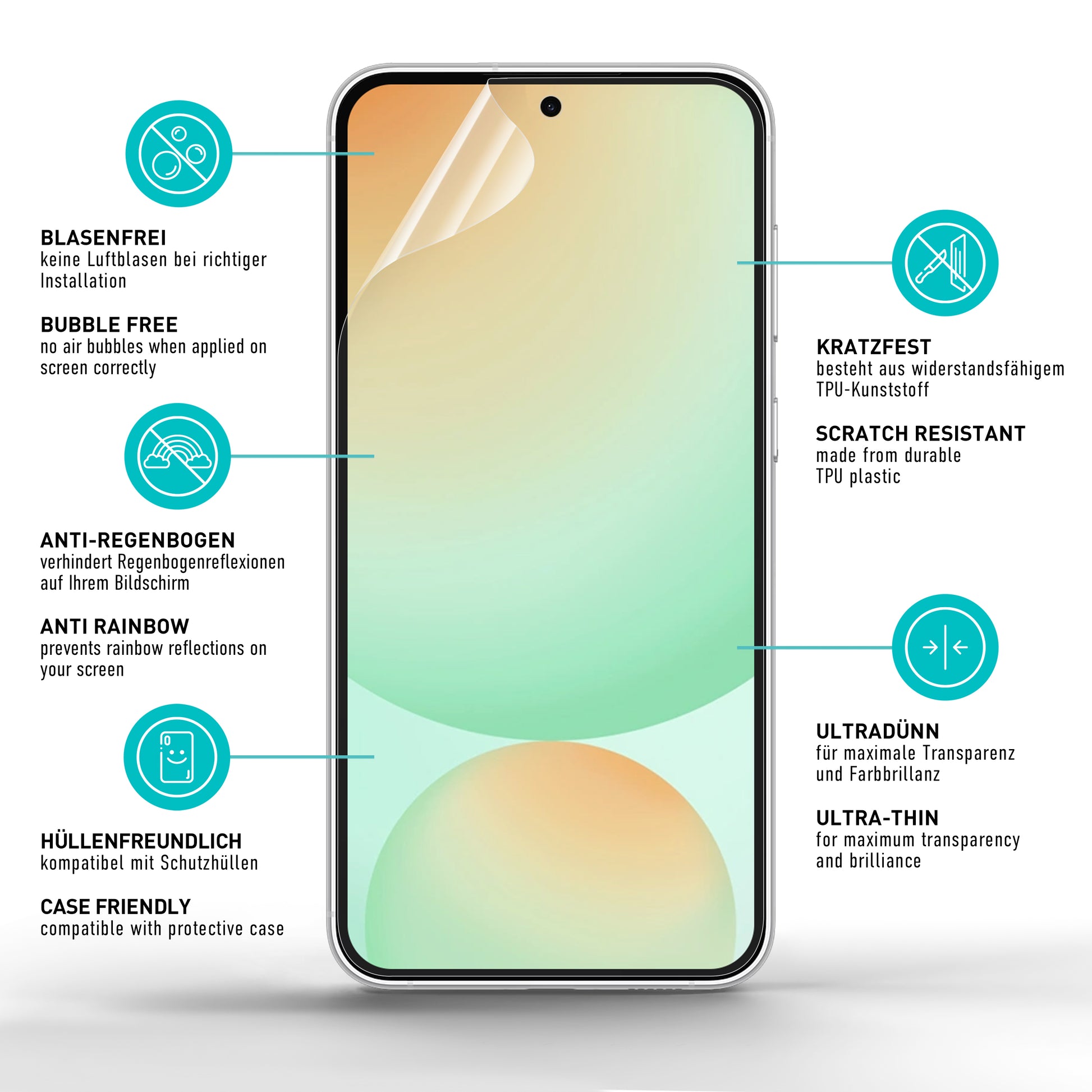 Perfect fit: The ultimate protective film made of high-quality TPU plastic is 100% compatible with the Samsung Galaxy S24 FE. Thanks to a special oleophobic coating, dirt, grease streaks and fingerprints can be easily removed with a single wipe, keeping your display clean at all times.