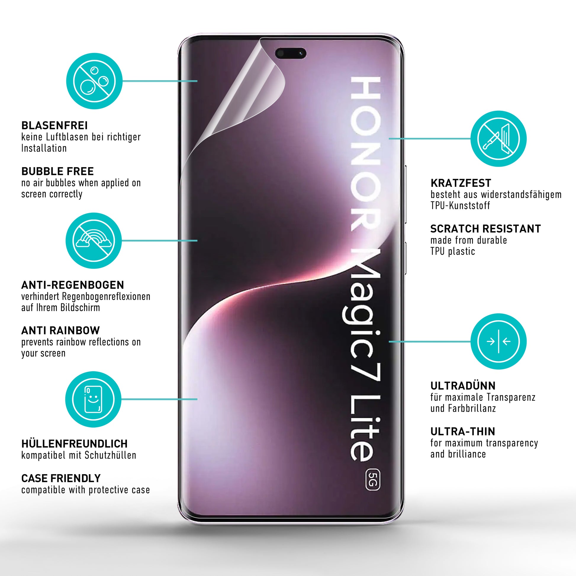 Perfekte Passform: Die ultimative Schutzfolie aus hochwertigem TPU-Kunststoff ist zu 100% kompatibel mit dem Honor Magic 7 Lite. Dank einer speziellen oleophoben Beschichtung lassen sich Schmutz, Fettschlieren und Fingerabdrücke mit einem einzigen Wisch mühelos entfernen, wodurch ihr Display stets sauber und klar bleibt.