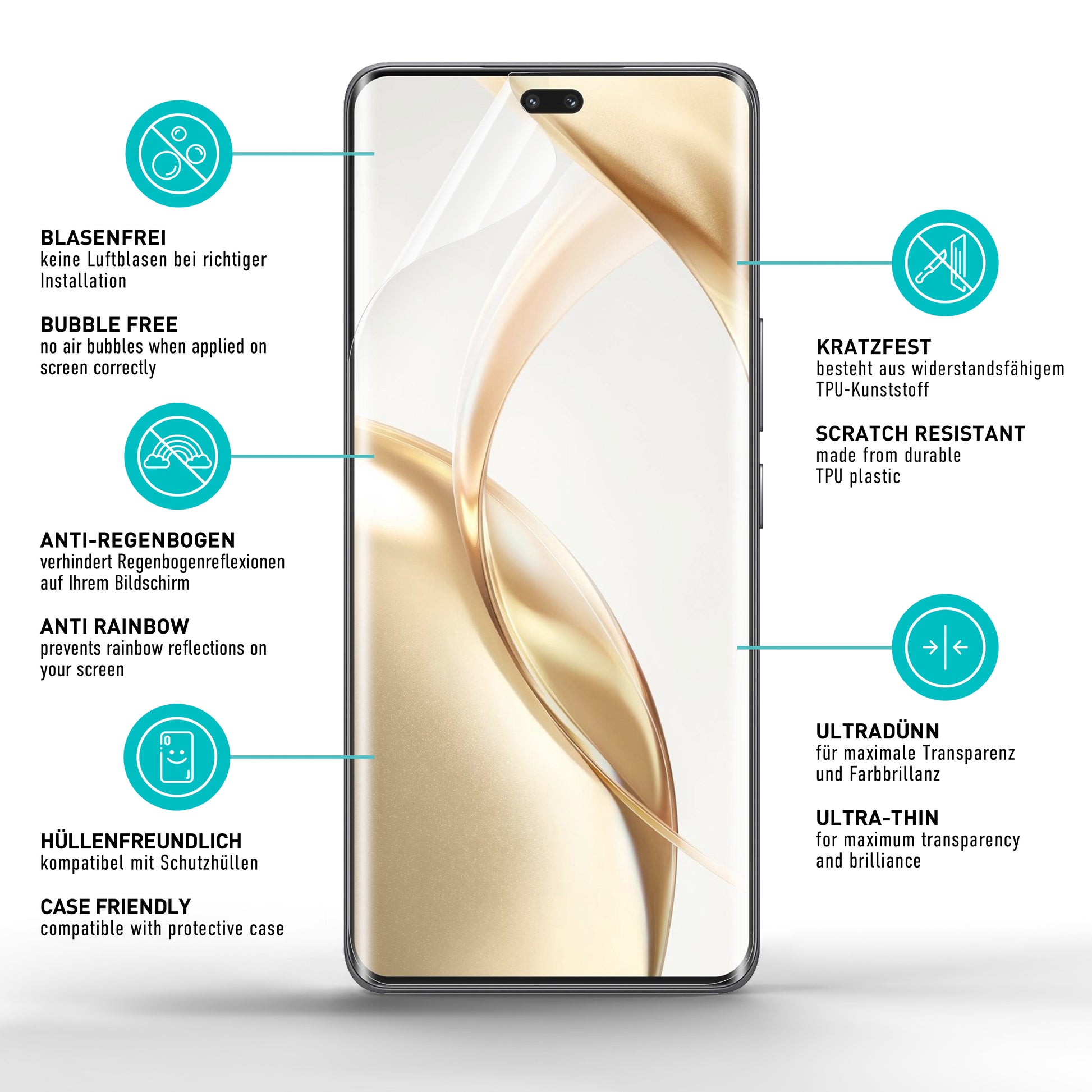 • Robuster TPU-Kunststoff - schützt ihr Display vor Kratzern