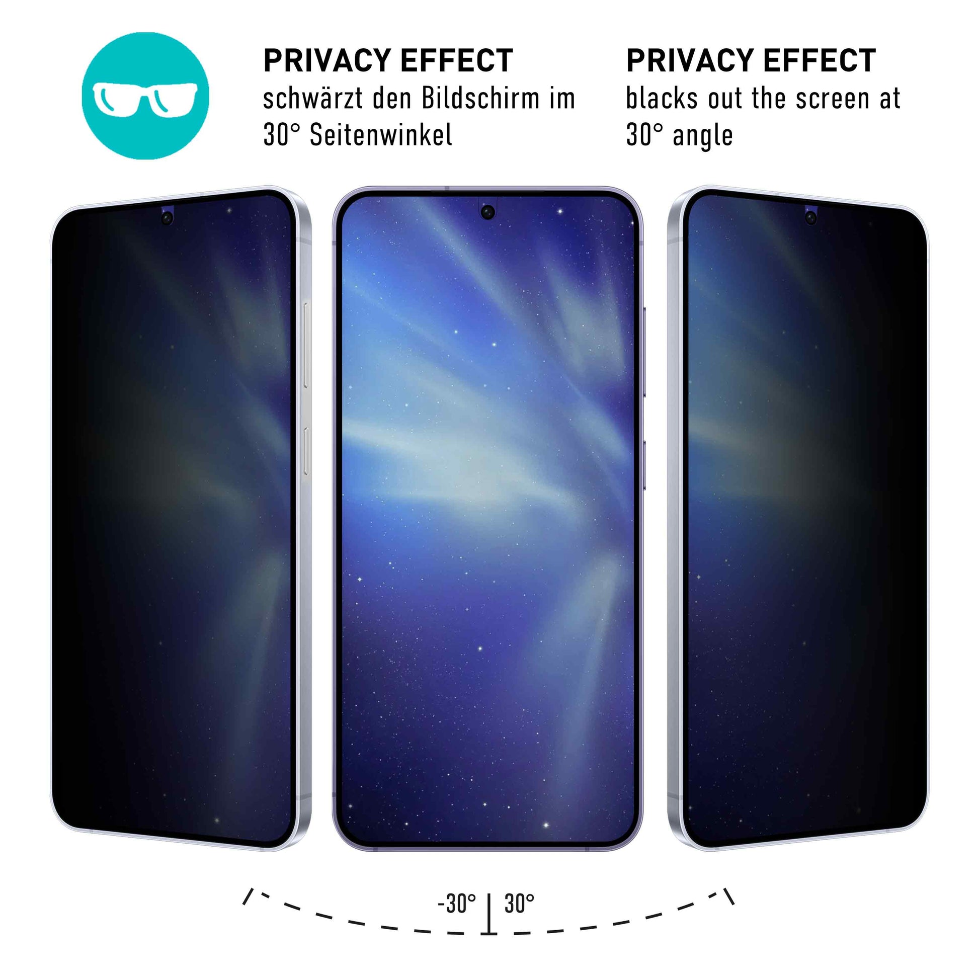 • Sichtschutz-Effekt - schwärzt den Bildschirm im 30 Seitenwinkel